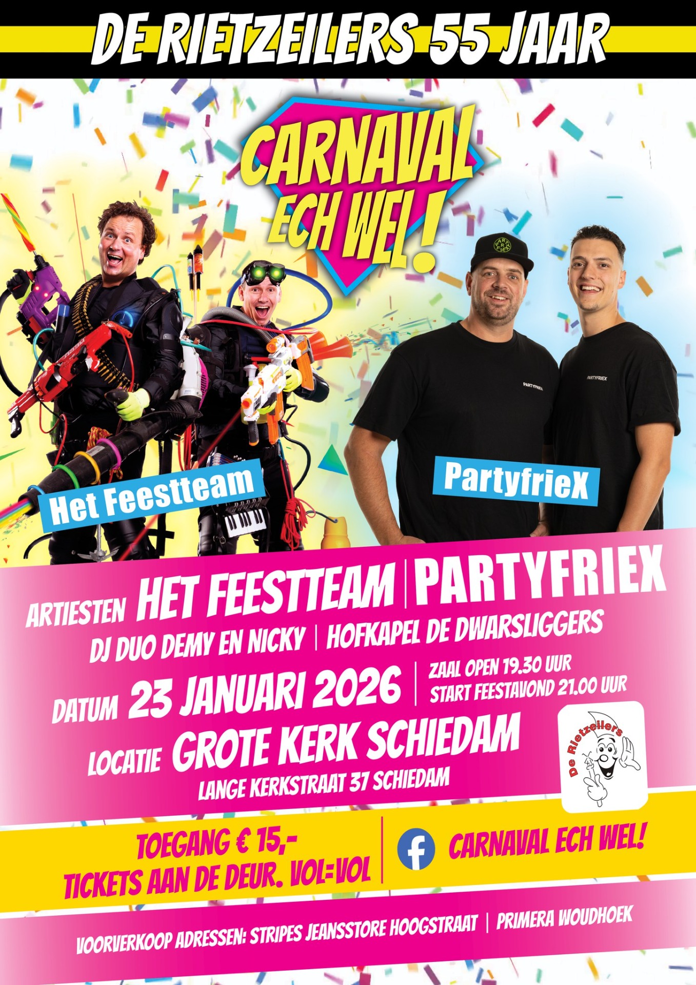 Ons eerste optreden in 2025 als hofkapel van de Rietzeilers is vrijdag 31 Januari bij Carnaval Ech Wel! in Schiedam.